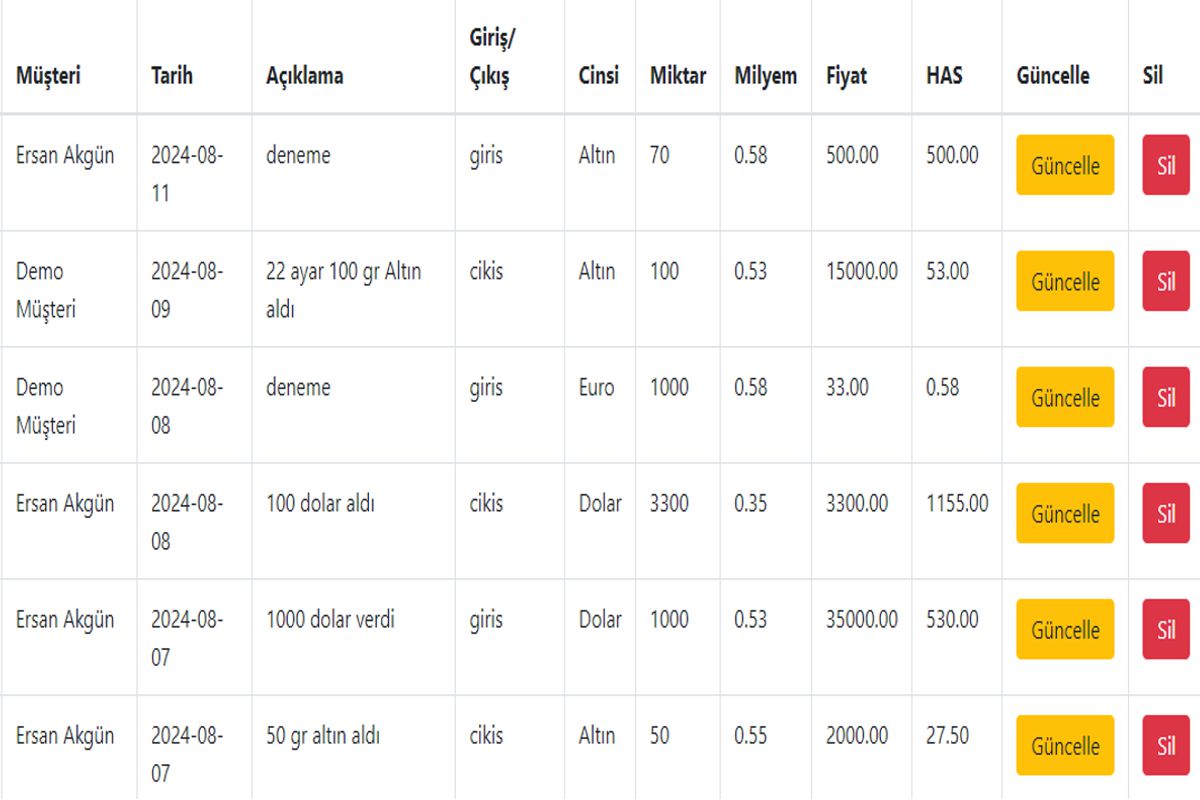 - Günlük Raporlar: Gün içinde yapılan tüm işlemlerin özet raporları.